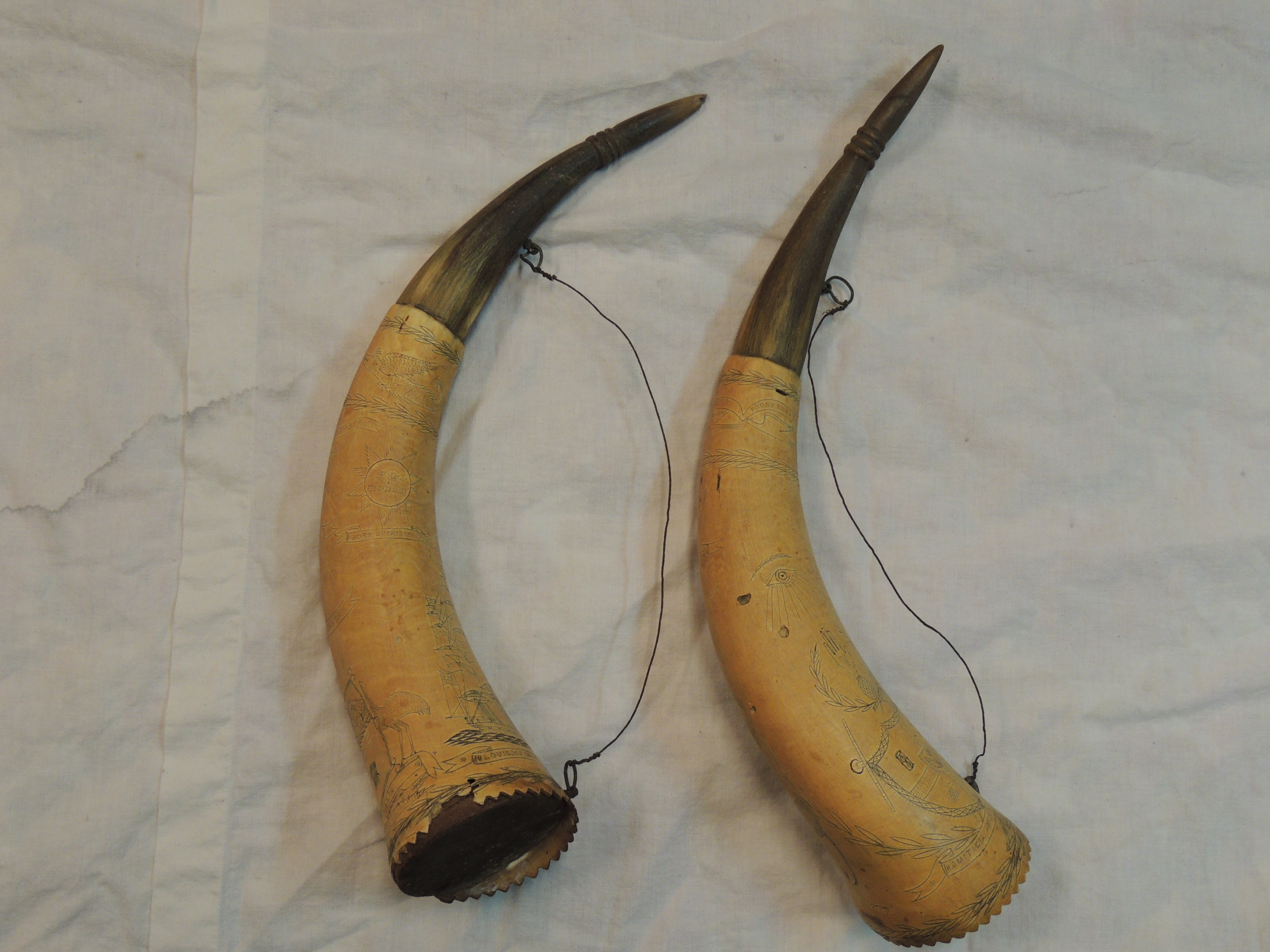 Peter Biddle immigrated to Australia in 1865 landing in Maryborough. In 1870 the family came to Gympie and Peter entered into the butchering trade. The family story states that he had these bullock horns engraved by a French Jeweller and engraver, Louis M.F. Gauvin in 1877.