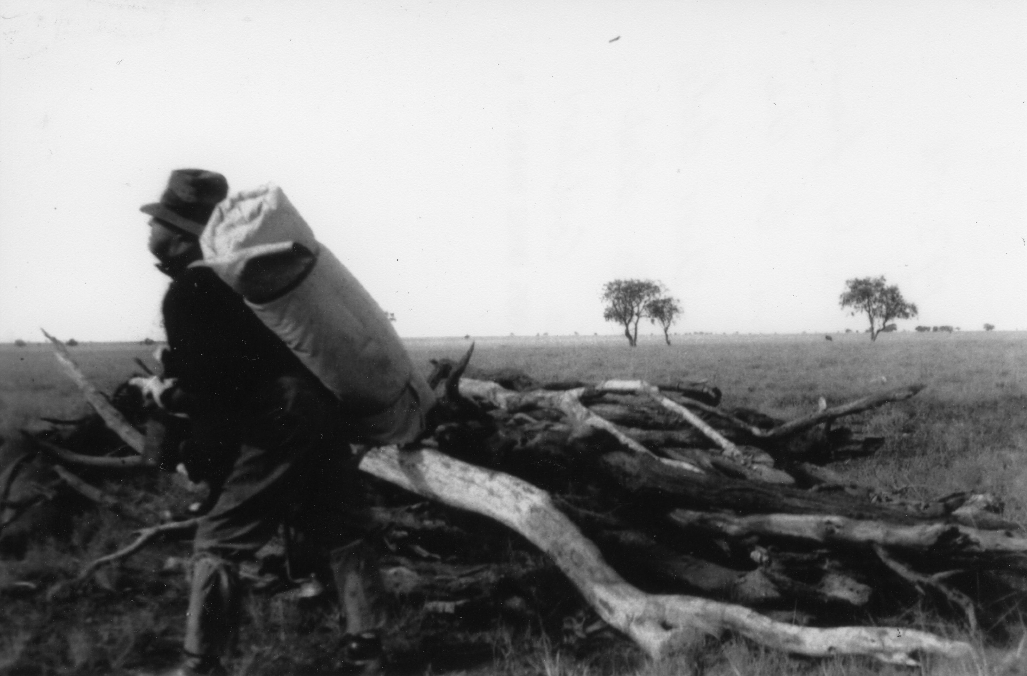 This photo taken in the 1930’s shows a Swaggie. Swaggies had to move from town to town for work. They would travel foot from one farm to the next farm carrying their swag. Their swag was their bedroll which they carried over their shoulder. They also usually had a tucker bag which was used to carry food, a billy can and other cooking implements. They would sleep under Coolibah trees.