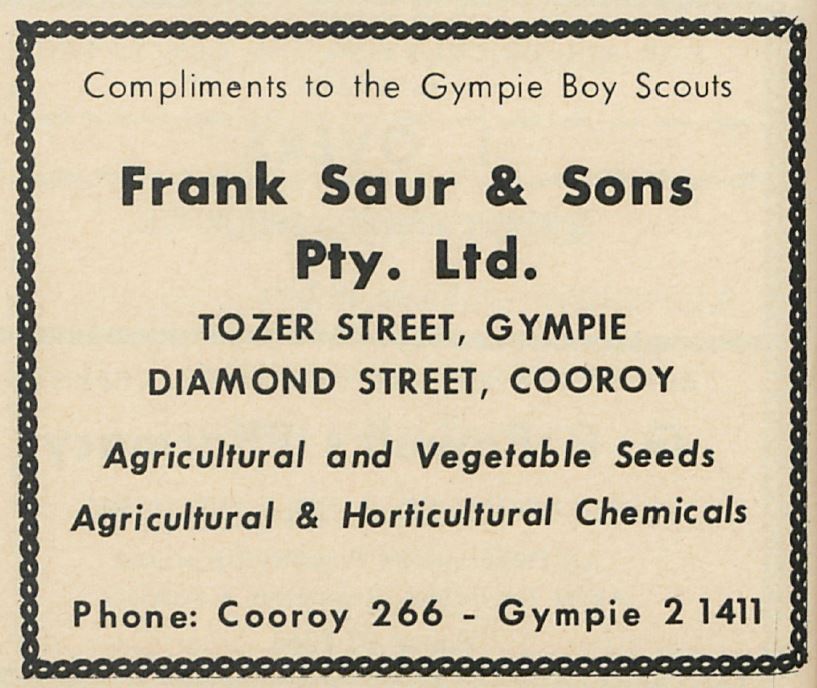 Advertisement for Frank Saur and Sons, taken from Scouting in Queensland June 1967, page 26
