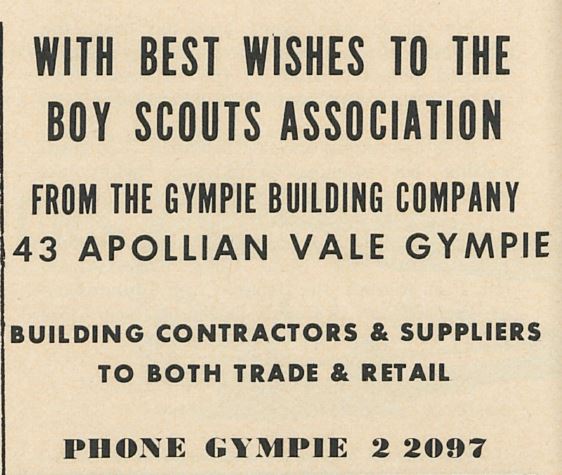 Advertisement for The Gympie Building Company, taken from Scouting in Queensland April 1967, page 12 http://onesearch.slq.qld.gov.au/permalink/f/1upgmng/slq_alma21105650990002061