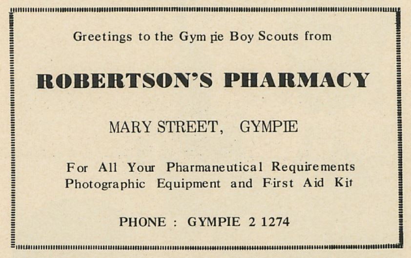 Advertisement for Robertson’s Pharmacy, Scouting in Queensland June 1967, page 34