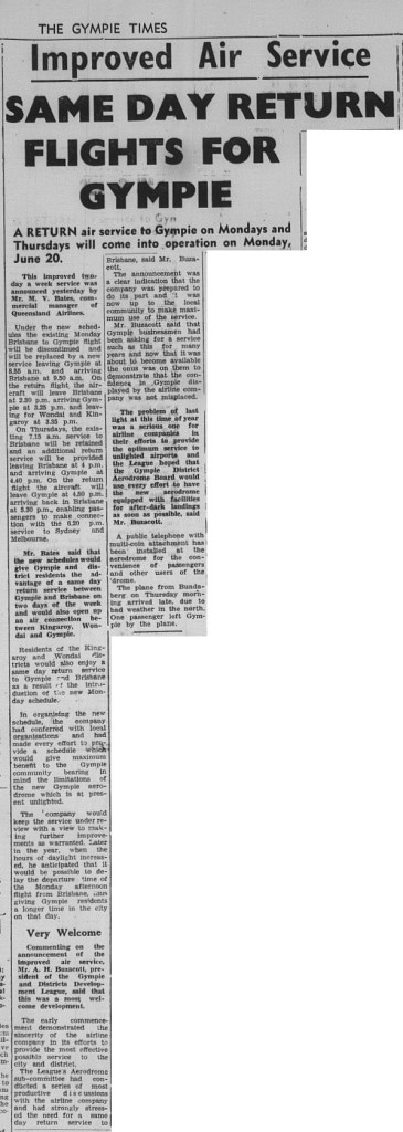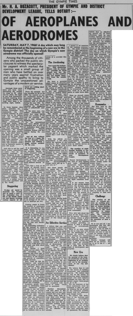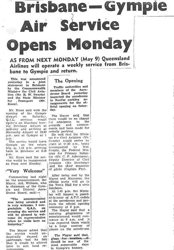 The Gympie Times ran several articles featuring the Aerodrome opening.
