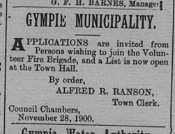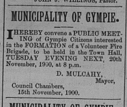 The Gympie Times reported on the establishment of the Fire Brigade and Fire Station.