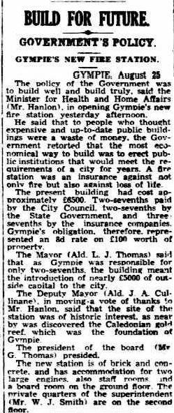 Fire Station, Gympie Times, Tuesday 27 August 1940, page 3