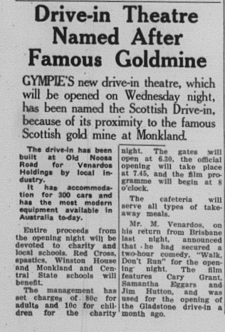 The Scottish Drive-in on Noosa Road, Gympie was opened on Wednesday 21 February, 1968 by Mayor Ron Witham.