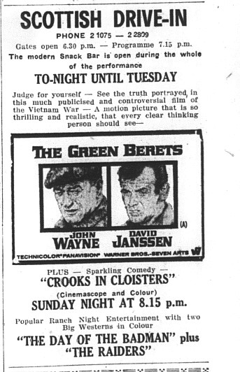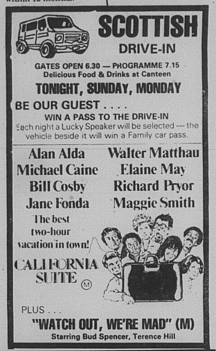 The Scottish Drive-in came about after a film license to operate a drive-in was granted by the Films Commission to Venardos Holdings in 1967. Works were carried out by local contractors.