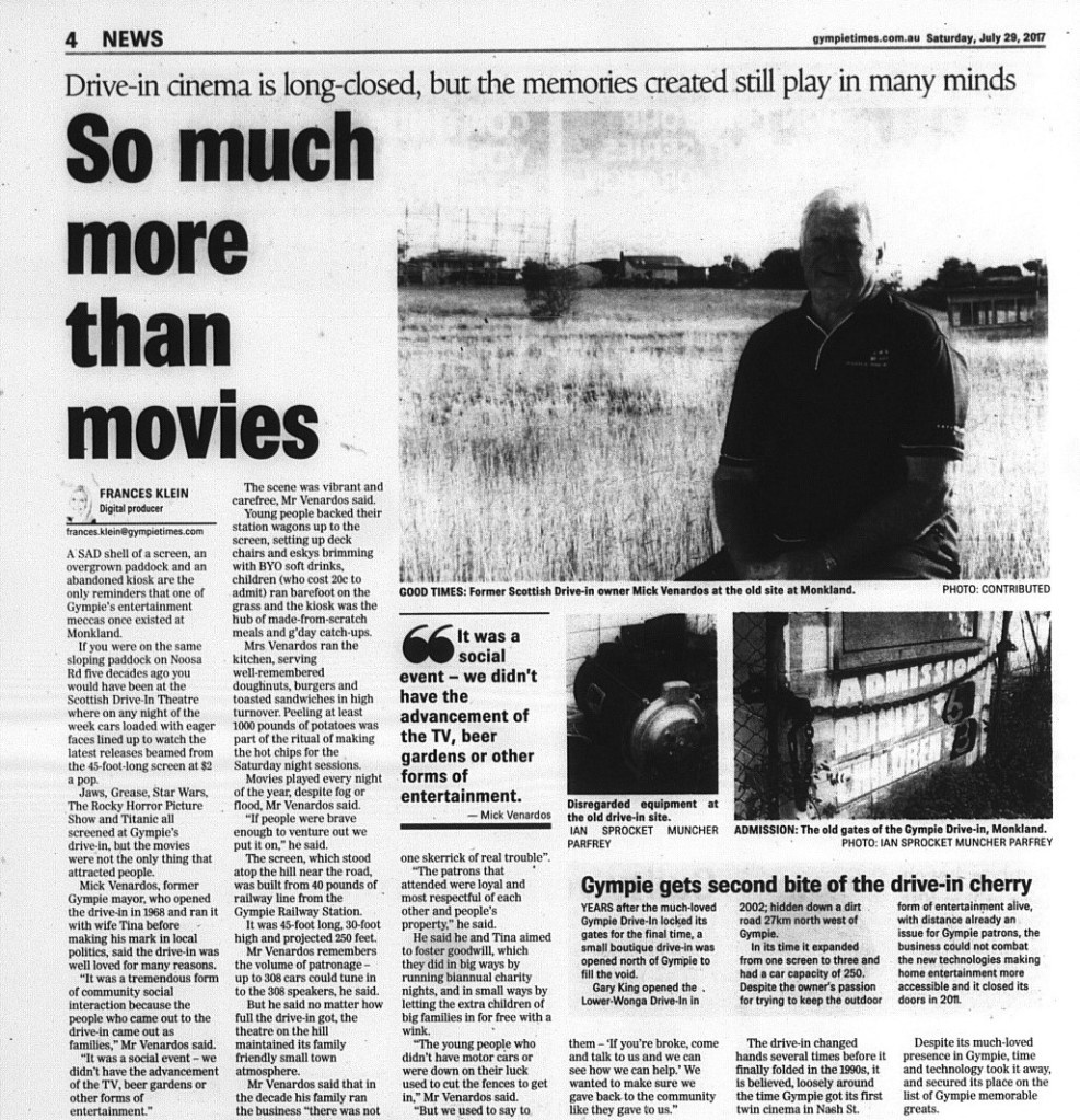 The Drive-in had several owners over the years, and in 2017 the Gympie Times interviewed Mr Venardos.