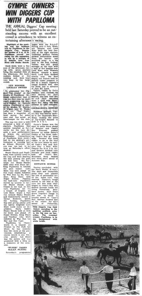 The first one is of a race meeting in September 1965 and according to the Gympie Times it was the first time a mobile starting gate was used. (Note: the video footage is listed as Gympie Race meeting 1965 – not confirmed though). Click here to view the footage (YouTube)
