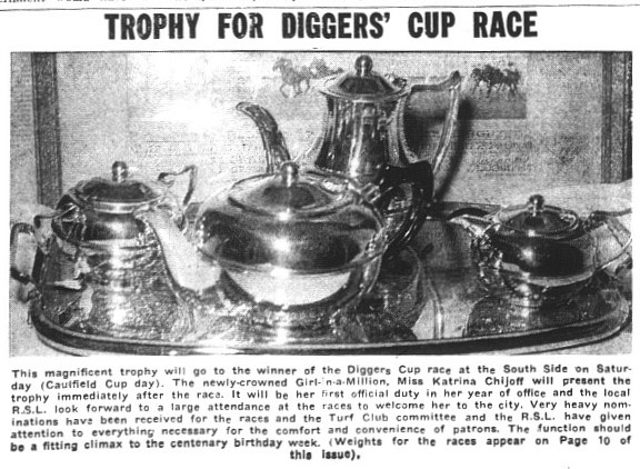 This silver set was the “trophy” for the 1967 Diggers’ Cup.