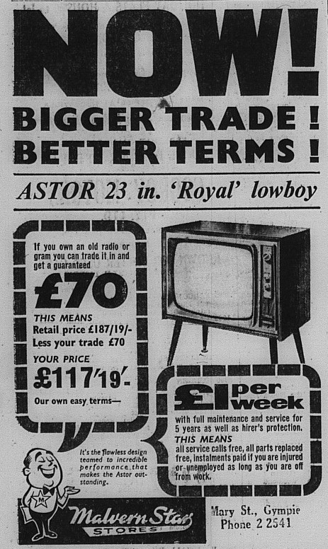 The Gympie Times reported on the opening of WBQ-8 and so did the local electrical shop.