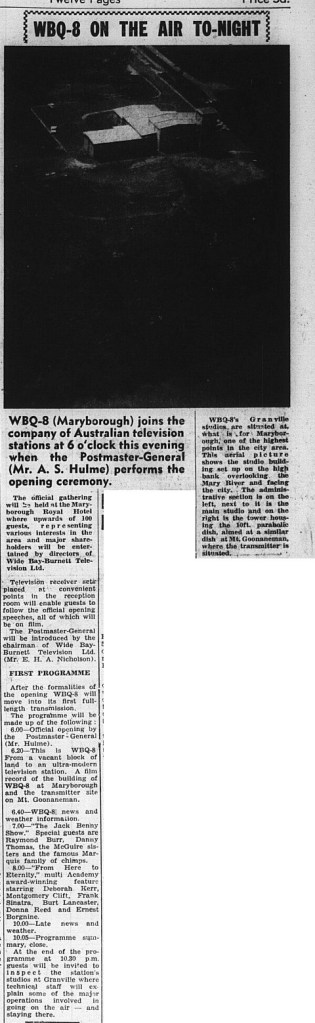 Prior to the official opening of WBQ-8 there were advertisements in the Gympie Times about the new television station.