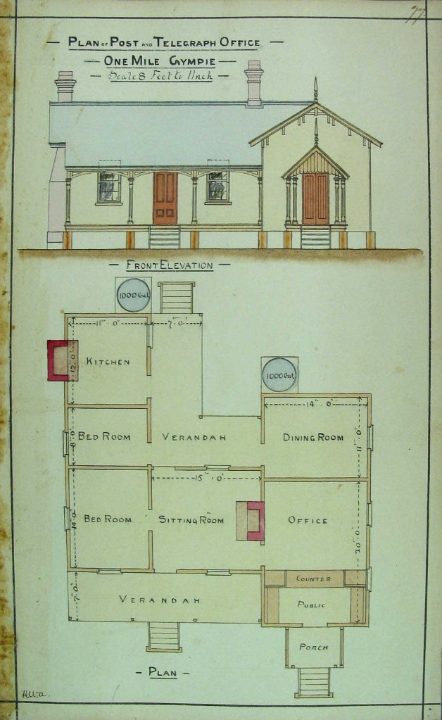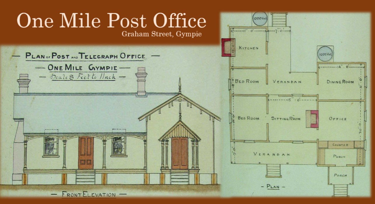 A letter written to the editor of The Gympie Times on 5 May 1883, and signed “Not a Mole” talks about the movement of the One Mile Post Office after a “small flood in the One-Mile which necessitated the removal of the Post Office furniture from the temporary Post Office, the present one being some eight feet higher”……”This opportunity was seized upon by miner Smyth and another to get the Post Office shifted into Graham street”.