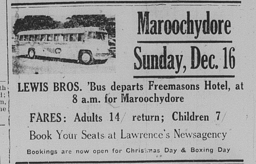 December 31, 2021 gympieregionallibraries Lewis Bros Bus Trips – Xmas & NY Did you ever take a Lewis Bros bus to Noosa or Maroochydore? The Gympie Times, December 1951 The Gympie Times, January 1952 Share this: Click to share on X (Opens in new window) X Click to share on Facebook (Opens in new window) Facebook Like Loading... Related