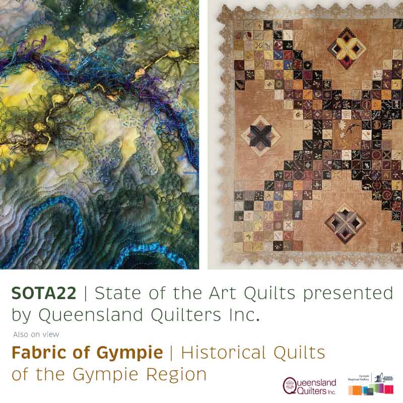 The Gympie Regional Gallery is honoured to be the first Gallery to exhibit the 2022 collection of the State of the Art Quilts, before it tours to other Queensland galleries later in the year.