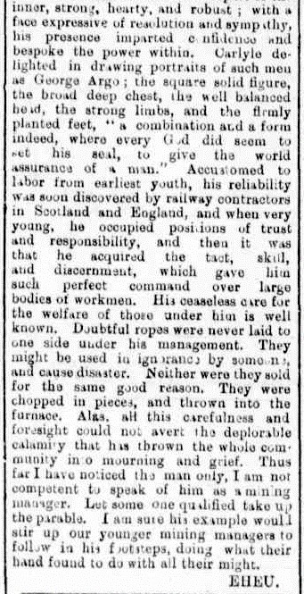 The following is an obituary of Mr George Argo, published at the end of the account of the accident.