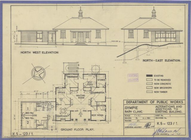 “The building, which cost £2,355, was opened on Saturday 24 April 1926 by the Minister for Works, James Kirwan. He referred to the clinic as the ‘Temple of the Babe’, an analogy first used by the Assistant Home Secretary Mr Brennan at the opening of the Toowoomba Baby Clinic in December 1923. Kirwan reiterated the government policy promoting motherhood and child welfare, indicating that the clinic had already begun operation prior to the official opening. Nurse McGrath had already begun her rounds of the district, visiting 83 babies, and 25 mothers had consulted the clinic. He said the building, was a beautiful structure which was an architectural adornment to the city of Gympie. When the Director of Infant Welfare, Dr Jefferis Turner wrote his first annual report in June 1927, he indicated that the Gympie Clinic had a good relationship with the local maternity nurses, and it had outperformed some older ones in the state, in terms of the numbers of new born babies visited by the clinic sisters.” [taken from State Heritage Register]