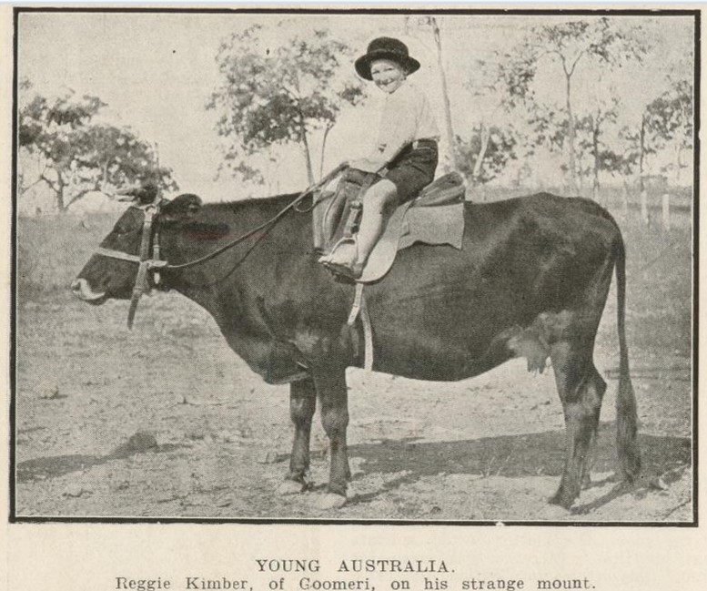 August 17, 2022 gympieregionallibraries Memories from Goomeri… Reggie Kimber of Goomeri on his strange mount!Queenslander Pictorial, 25 October 1919 Queenslander Pictorial, 25 October 1919 Share this: Click to share on X (Opens in new window) X Click to share on Facebook (Opens in new window) Facebook Like Loading... Related
