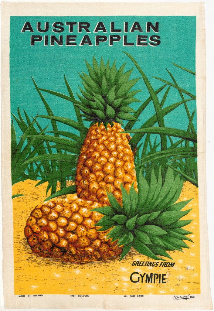 The State Library of Queensland collects, shares and exhibits memories of Queensland. A current exhibition is “Queensland to a T” showcasing amazing retro souvenir tea towels from throughout Queensland.