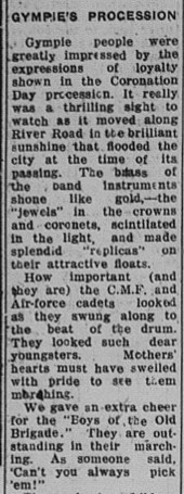 Enjoy some photos of Gympie’s Coronation procession and read on for the reporting on the day…..