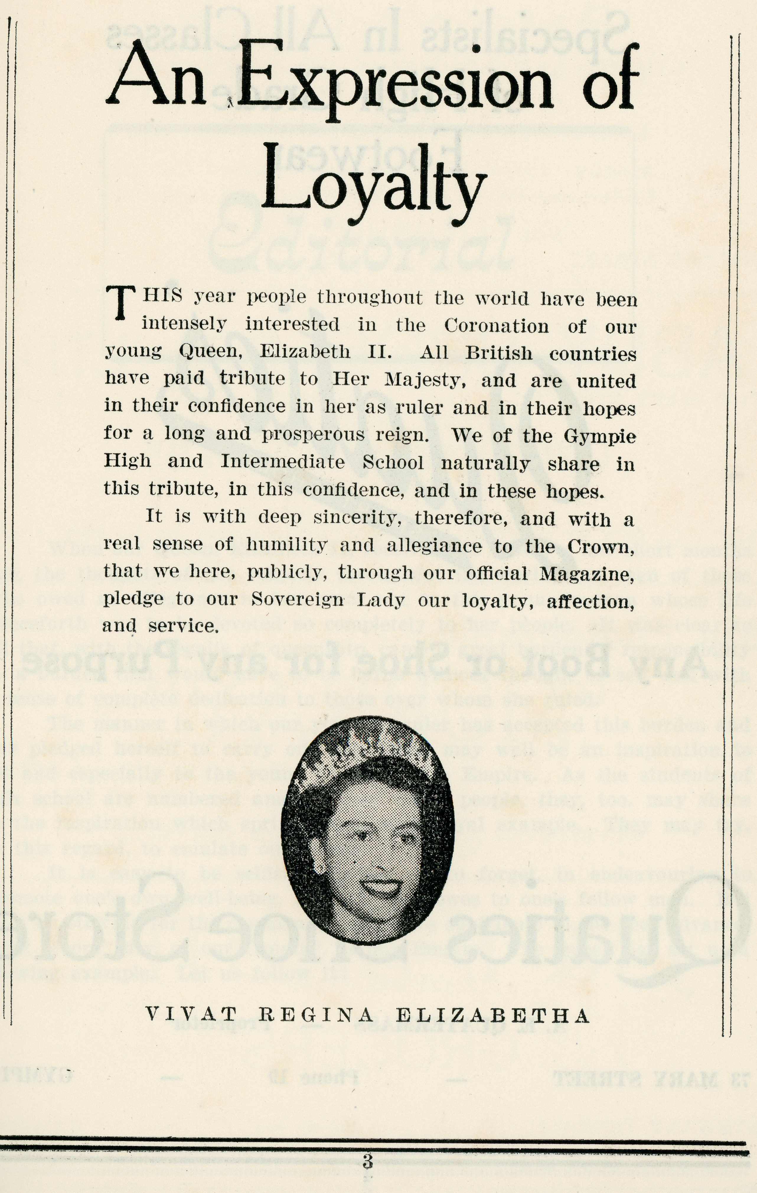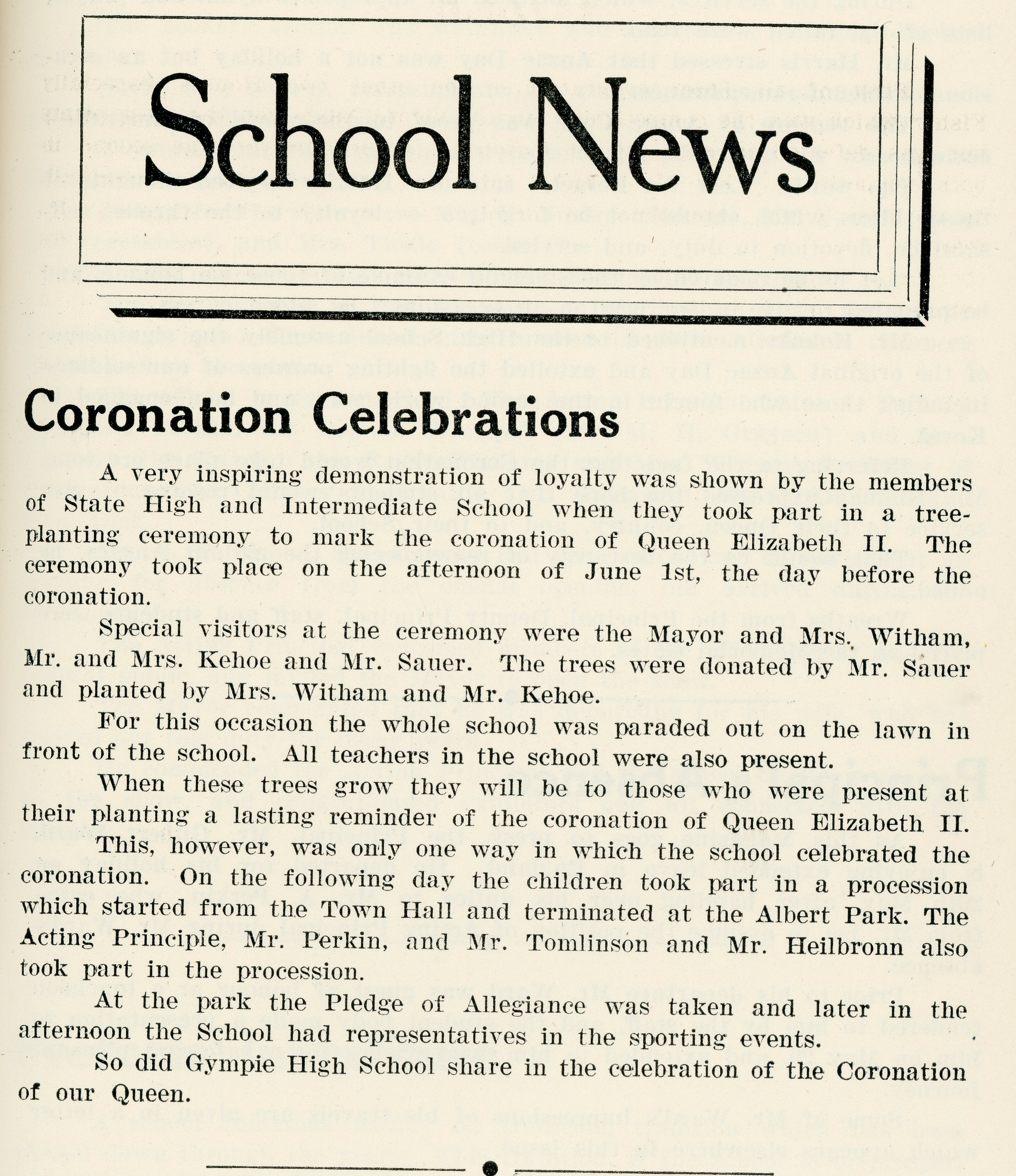 Gympie State High School’s 1953 School Magazine “Gympie Gold” produced a Special “Coronation Number” to mark the history making year.