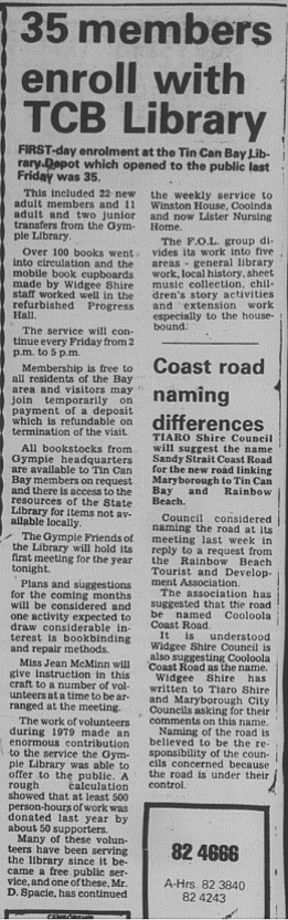 Tin Can Bay could naturally believe it had come of age and was now complete when the library was officially opened in 1980 with Joy Rigby as coordinator.