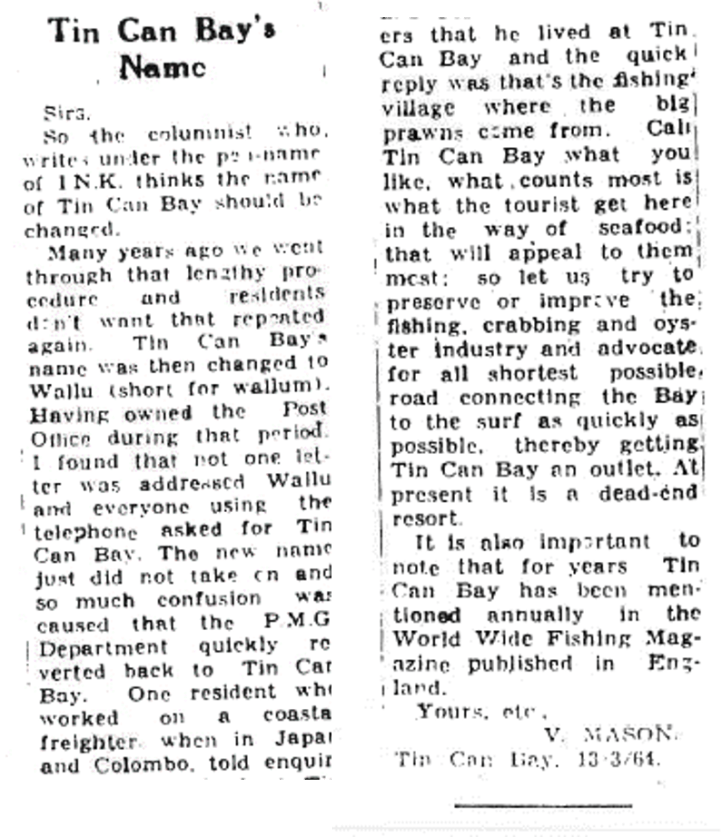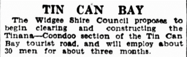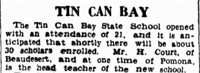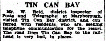 Interestingly however, old newspapers and reports were already using the name Tin Can Bay.