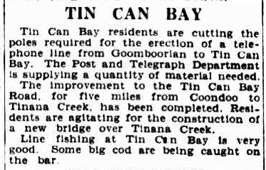 However, on 6th March 1937 the Courier Mail published a small article which read “The Government has decided that Tin Can Bay township shall be officially known by the name, and not as Wallu as at present.” And just like that the deed was done.