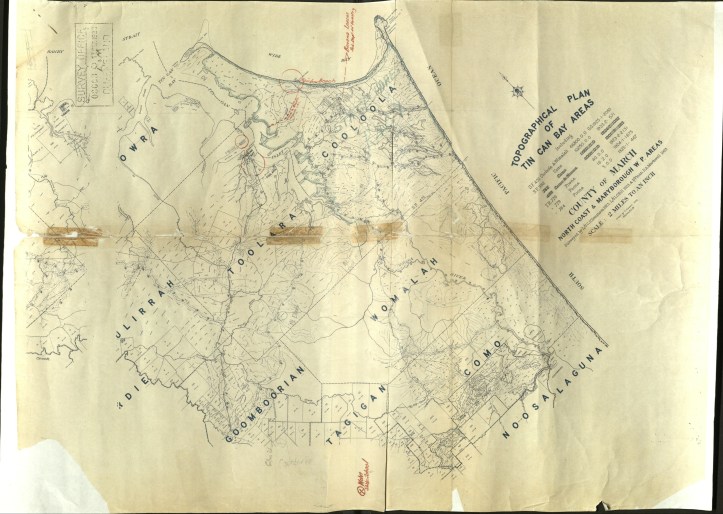 The areas were available under perpetual lease conditions and the very first purchasers of land at Tin Can Bay one hundred year ago were M. E. Pearce, W. Bushell, T.H. Steele, B. Dickson, D.D. Woodrow, A.G.D. Austin, A.J. McFie, F.J. Gillis, R.M. Hose, Mabel C. Power, S.F Sheldon, D. Molki , A. Williams, A. Chisholm, B. Power, L.M. Pearce, Z.D.S. Skyring, C. Meyers, V. E. Walker, D.J. Groundwater, C. Gidley, N. O’Brian, A.P. McKenna and J.W. Burkhardt. There was no bid for ten lots in the town of Toolara, situated on the northern side of the Teewah Creek.
