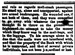 Read the first reporting was on the 9th January 1869 titled “Sticking up of the Gympie and Brisbane Mail” and reads in detail as follows: