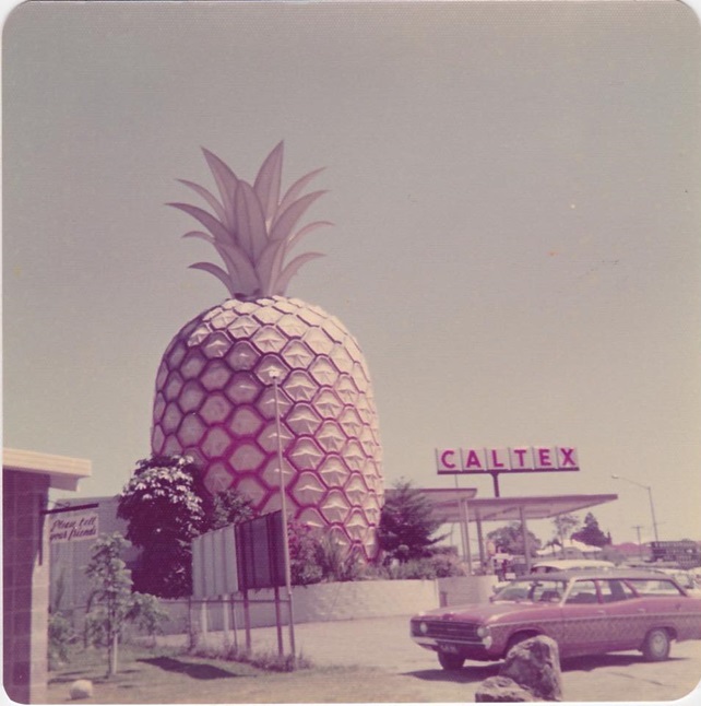 Gympie’s Big Pineapple at the Caltex service station around 1976. Photo source: Gympie- The Real Treasure is the town Facebook page