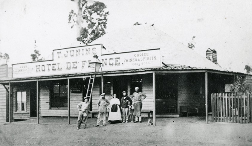 Junin’s Hotel de France 1872 which was located at what is now 143-145 Mary Street (next to Toyworld). Source: E.H. Forster, photographer.