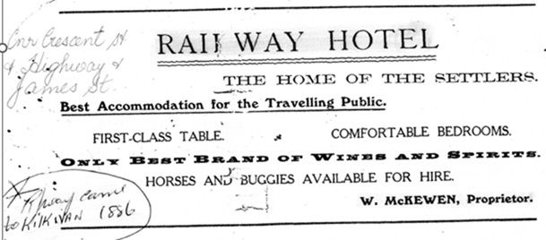 Advertisement for the Railway Hotel (year unknown). Advertisement source: Kilkivan Historical Museum.