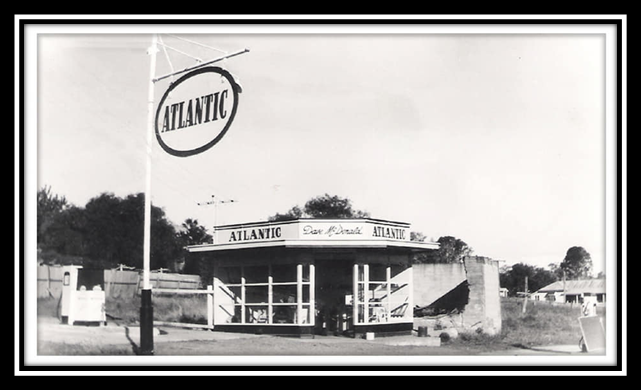Dave McDonald- Atlantic Motors Goomeri, year unknown. This was located on the corner of Boonara St and Post Office Lane. Photo source: Goomeri History Facebook page.