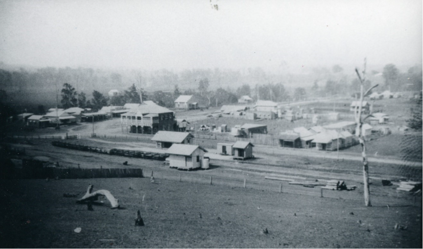 View of Imbil looking north-east from Elizabeth Street. The largest building in this image is the Railway Hotel. Source: Gympie Library Photograph Collection.